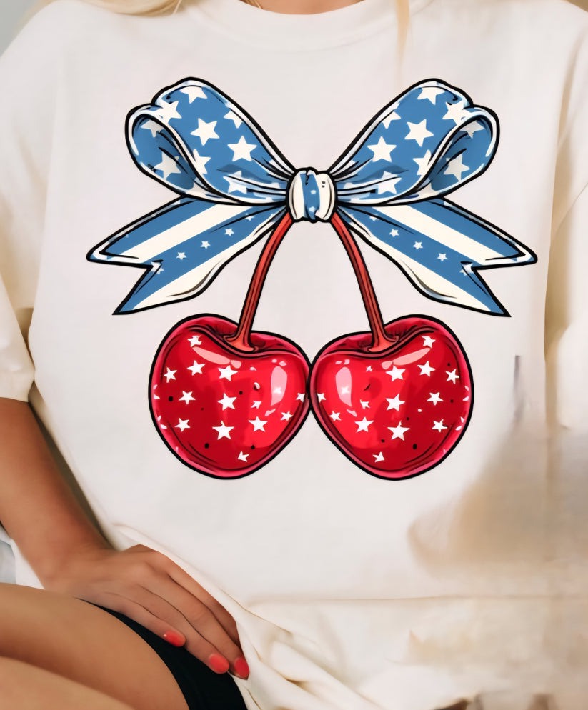 Flag Bow with Cherries T-Shirt