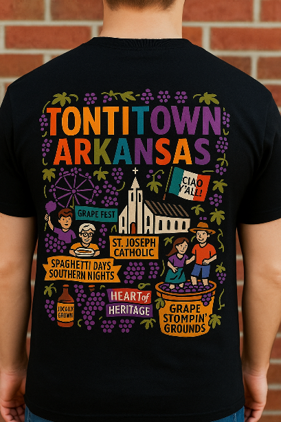 Back Full print with all things Tontitown